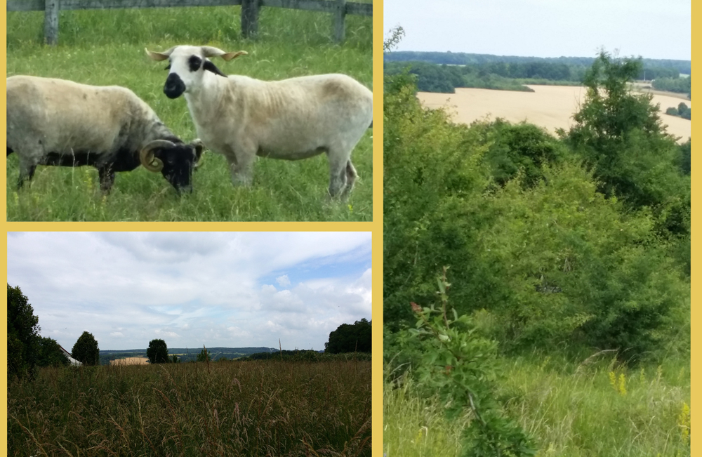 Le domaine de Vaulezard, s’étendant sur 28ha situés sur les hauteurs de la commune, classé Natura 2000, abrite, outre un échantillonnage pittoresque d’animaux de ferme appartenant à des races rares, voire en voie de disparition (dont de très sympathiques cochons gris du Poitou et des chèvres aux cornes peu communes), souvent sauvés de l’abattoir, une biodiversité d’une richesse exceptionnelle de nos jours, tant dans le domaine de la flore que dans celui de la faune. Les commentaires de notre chaleureuse guide sur la flore furent largement relayés, en cours de chaîne, notre groupe tenant de la cordée, par notre past-président François Marchon, dont les compétences sont difficiles à égaler en la matière.
